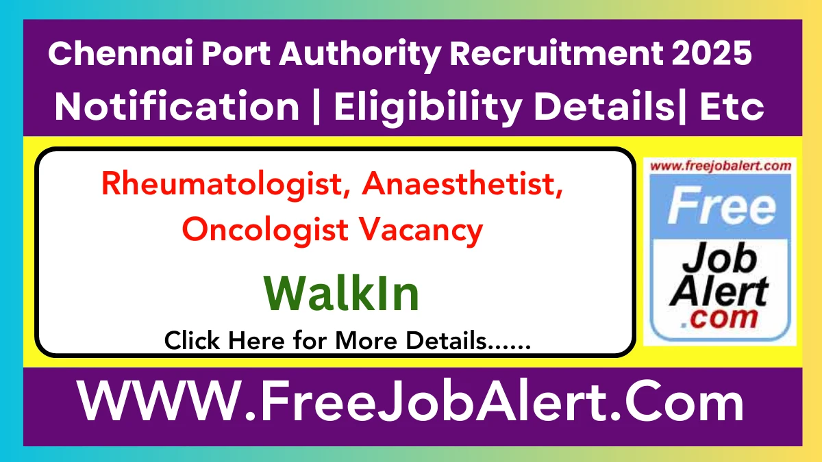 Chennai Port Authority recruits 3 Rheumatologist, Anaesthetist, Oncologist Posts. Candidates with MS/MD, DM can attend for walk in on 11-02-2025.