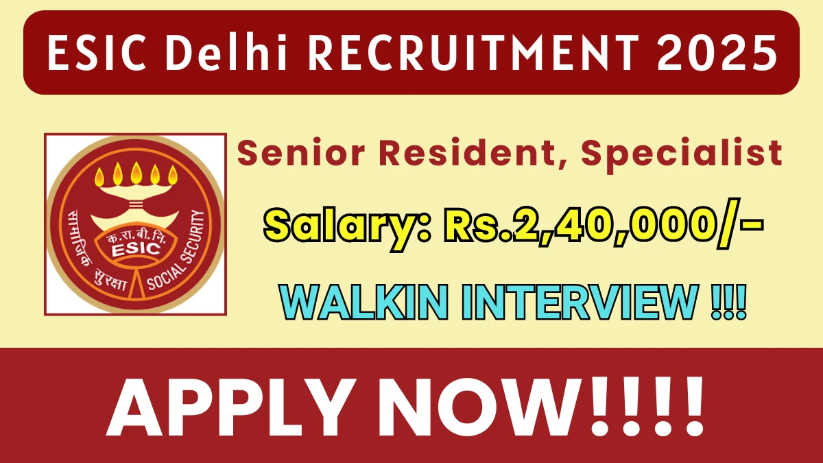 1. What is the Walk in date for ESIC Delhi Senior Resident, Specialist Vacancy 2025?