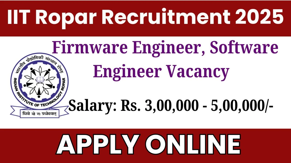 Name of the Post: IIT Ropar Firmware Engineer, Software Engineer Online Form 2025