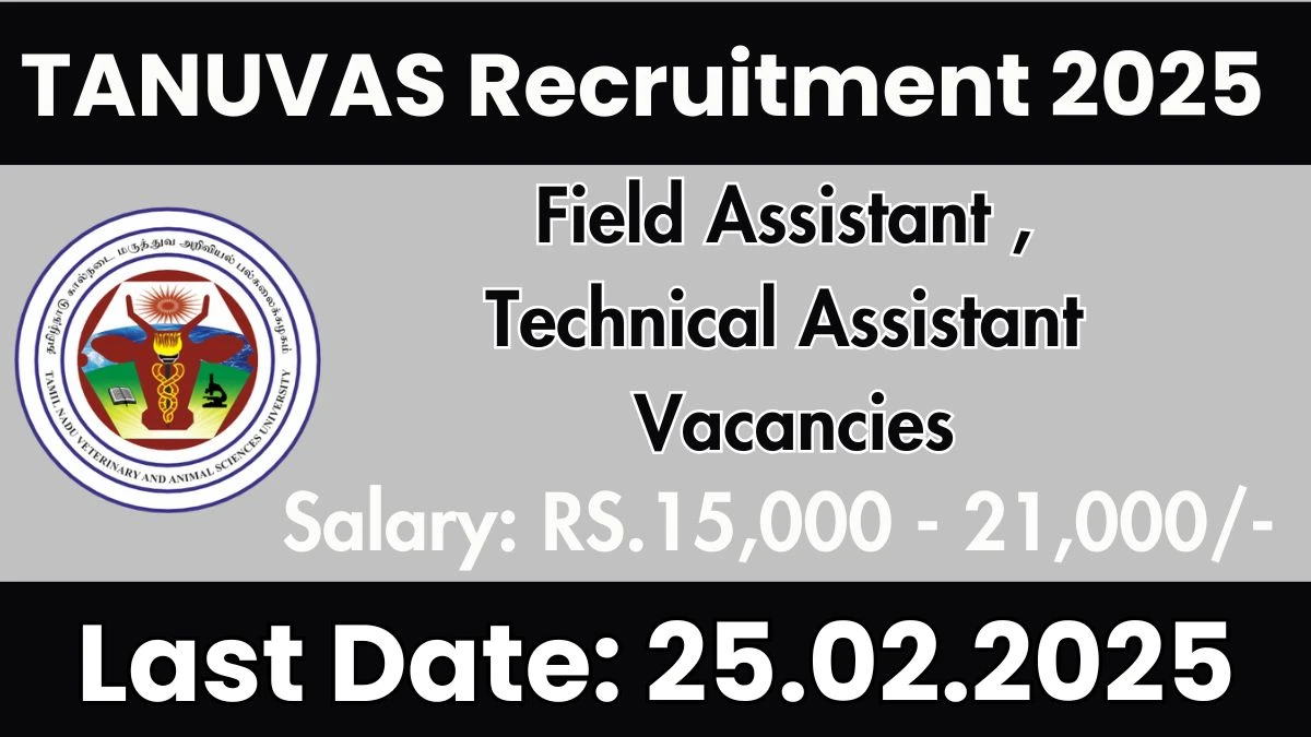 Tamil Nadu Veterinary and Animal Sciences University (TANUVAS) Field Assistant ,Technical Assistant Vacancy 2025 |